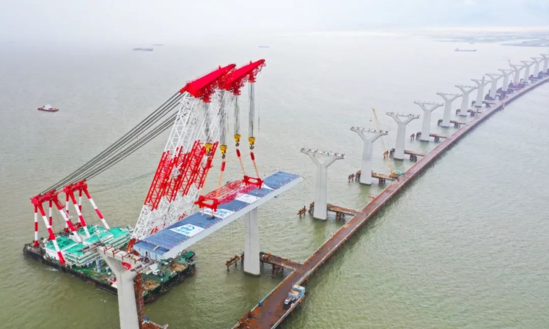 1340噸!全橋最大、最長、最重的6節大節段之一成功吊裝