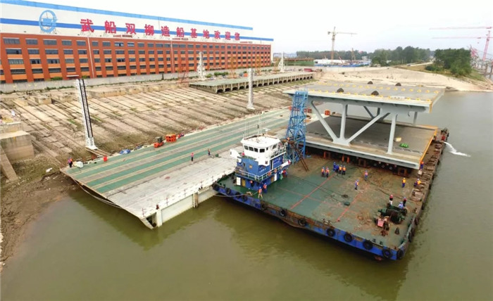 近日,由武船重工股份承建的楊泗港長江大橋主橋鋼桁梁首節G24H分段成功裝船,將發運至橋址進行吊裝。