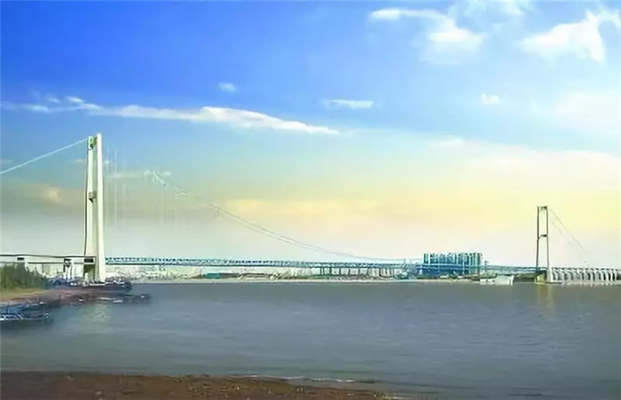 楊泗港長江大橋位于武漢白沙洲大橋和鸚鵡洲大橋之間,連接武漢三鎮中的漢陽區和武昌區,是武漢市長江上第十座大橋,也是明年“世界軍人運動會”的重點項目。楊泗港大橋采取一跨跨越長江的方案,跨度長達1700米,鋼桁主橋總工程量4.81萬噸,是世界上工程規模最大的雙層懸索橋,其懸索橋跨度在國內排名第一、世界排名第二。