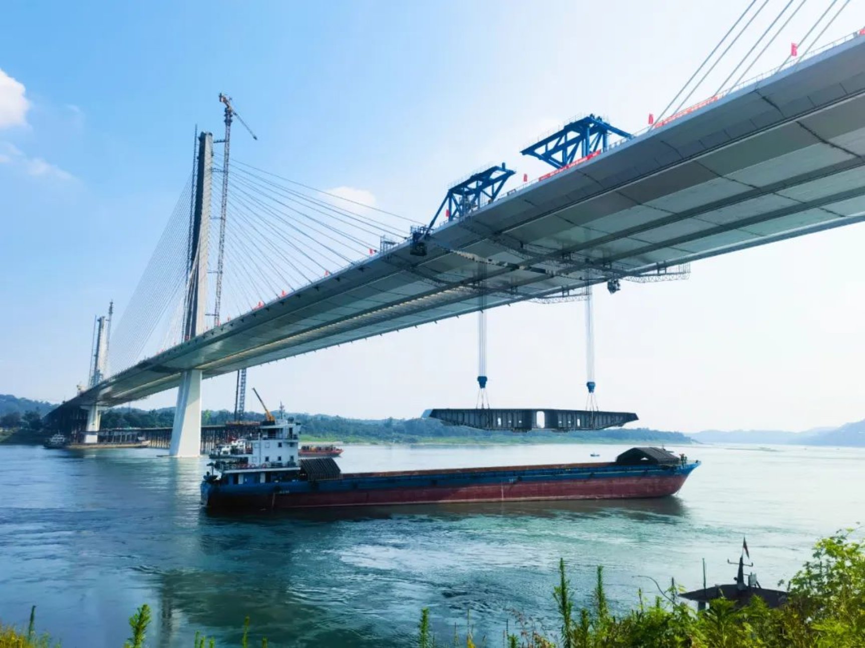 6月26日,由中國船舶集團武昌造船重裝公司承建的瀘州長江六橋成功合龍,瀘州長江六橋是目前世界上在建最大公軌兩用三塔鋼箱梁斜拉橋,也是瀘州市重要的過江通道,當?shù)厝嗣衤N首以盼的民生工程。