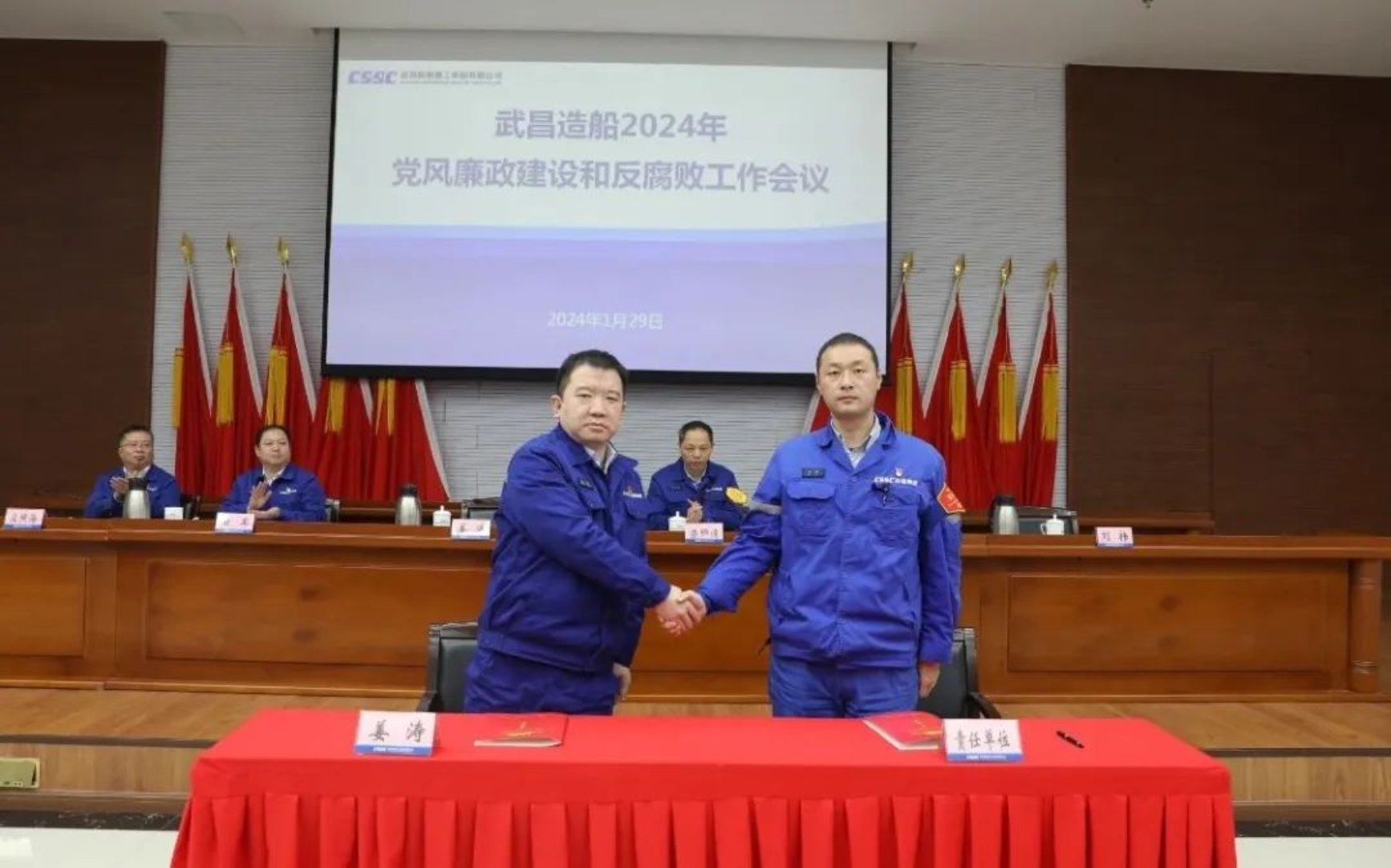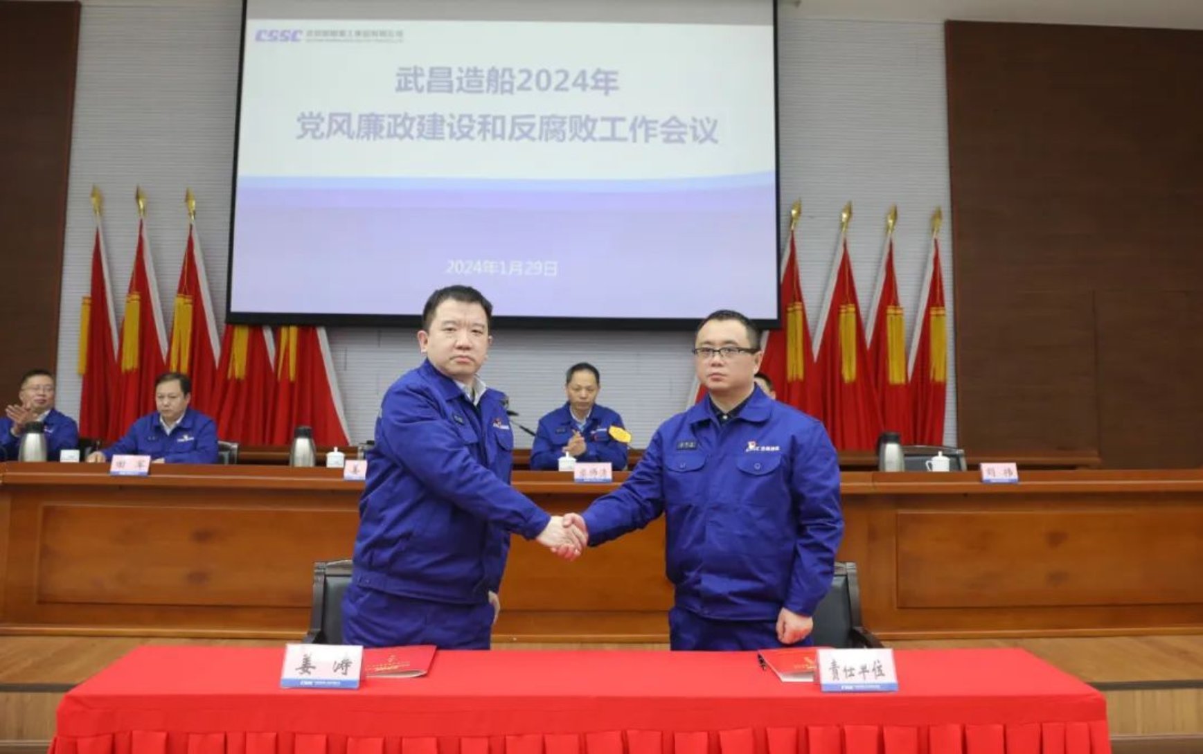 會(huì)上,黨委書記、董事長(zhǎng)姜濤分別與特船事業(yè)部、生產(chǎn)管理部、重工公司等三家單位代表簽訂了2024年黨風(fēng)廉政建設(shè)責(zé)任書。