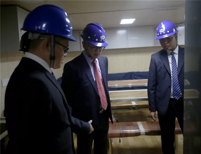 在有關負責人的陪同下,姚勝華重點檢查了該艦駕駛室、機艙、廚房、餐廳、臥室等主要區域,詳細了解當前各區域在實施過程中重點、難點,并針對一些疑難問題,提出解決方案。
