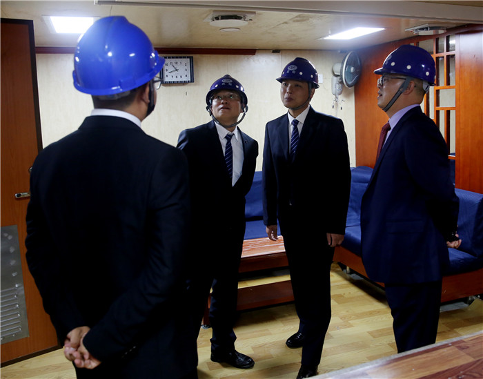 在有關負責人的陪同下,姚勝華重點檢查了該艦駕駛室、機艙、廚房、餐廳、臥室等主要區(qū)域,詳細了解當前各區(qū)域在實施過程中重點、難點,并針對一些疑難問題,提出解決方案。