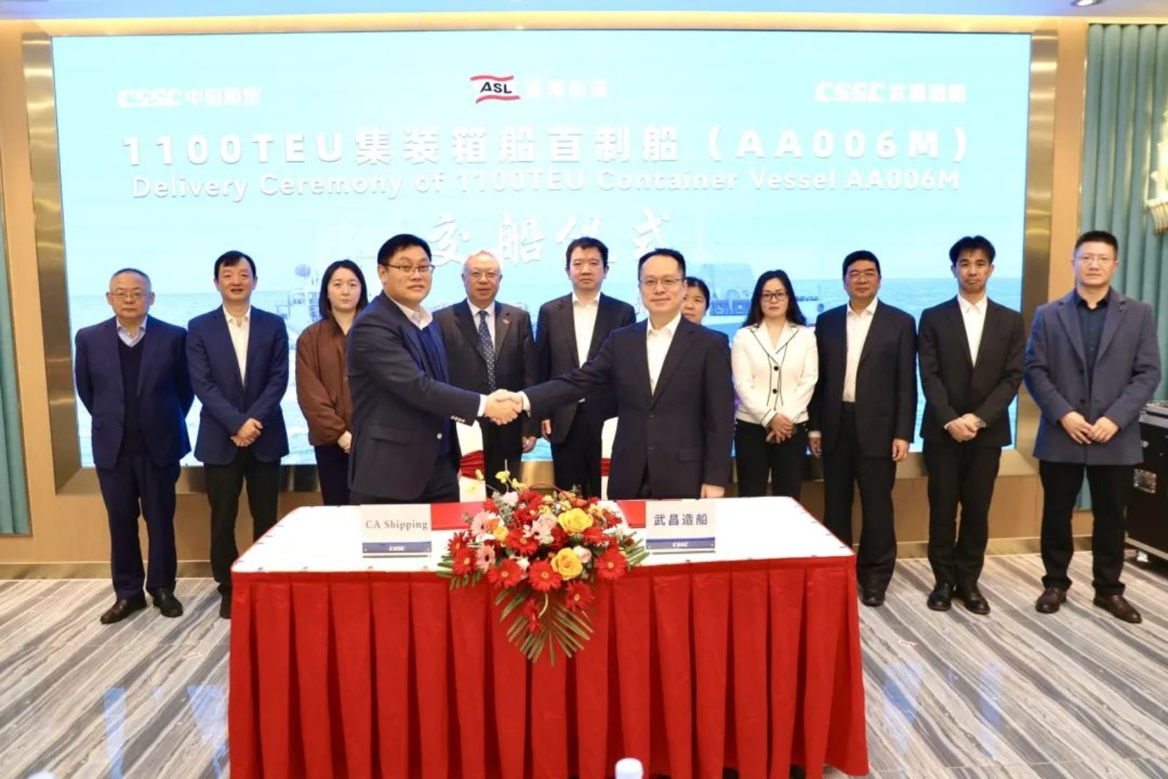 臘月風和意已春,1月18日由中國船舶集團武昌造船為CA SHIPPING建造的1100TEU集裝箱船首制船較合同提前成功交付!這是公司繼7200DWT不銹鋼化學品船3號、4號船和向陽紅05船之后,提前交付的第四艘船,該船的順利交付意味著武昌造船成功實現新年交付開門紅,標志著公司在商船市場已形成提前交付的良好勢頭,昂首邁入以學促干、價值創造、精益求精的新征程。